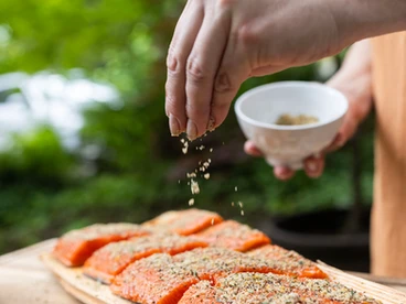 It’s that time of year – salmon runs are in full swing, and fresh salmon is readily available. Grilled cedar planked salmon has a subtly smoky flavor, never sticks to the grill, and makes for easy clean-up! This recipe is a little bit sweet, salty, woodsy, and it’s rich without being too heavy. We hope you enjoy!