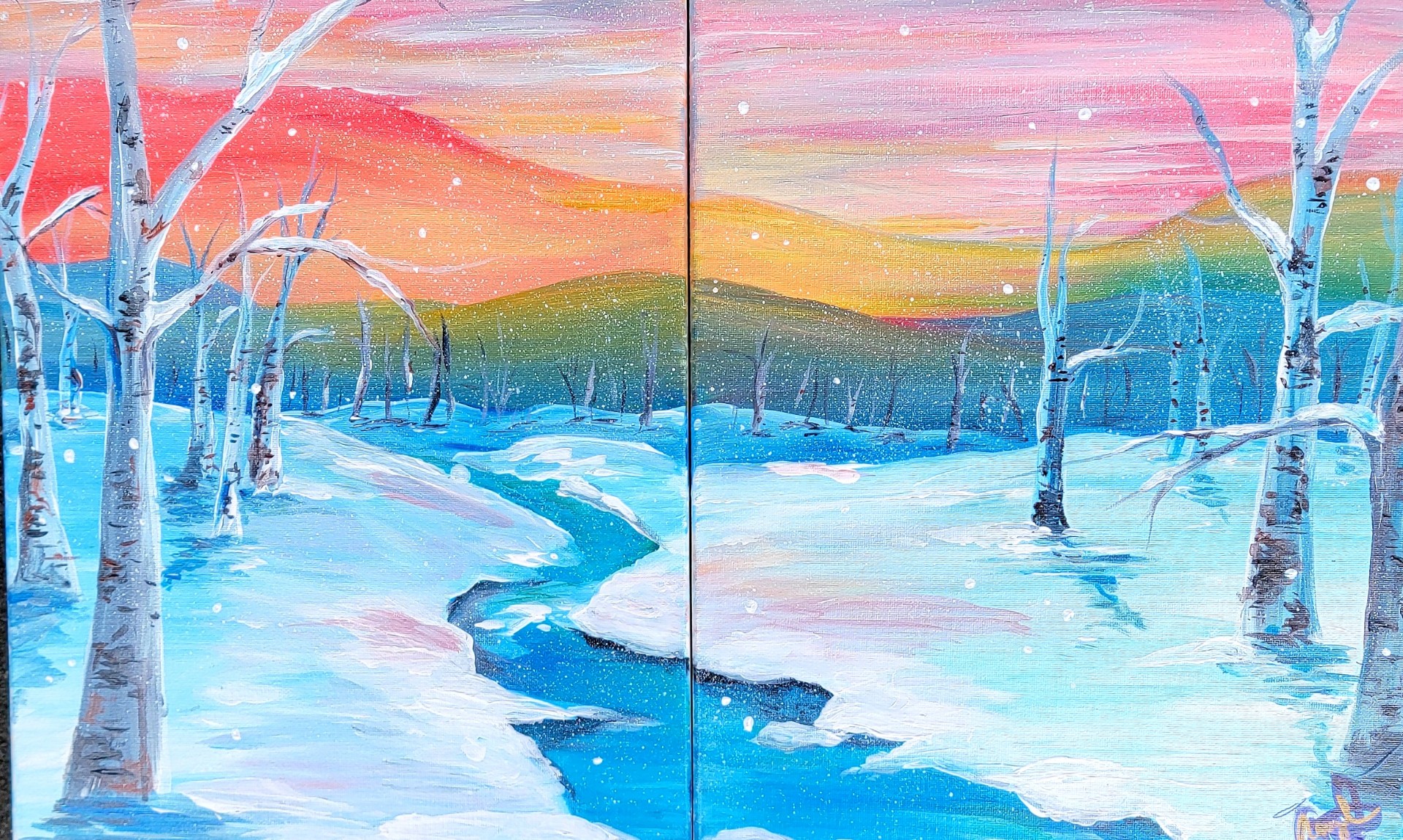 A Partner Paint Party! You and a loved one each paint your own canvas to form one painting. Or paint solo and create a single piece on one canvas. Each painter must purchase a ticket. Includes step-by-step instruction, all paint supplies, brushes, aprons, and easels. Enjoy a glass or bottle of your favorite Gard wine with your friends while you create your own work of art!