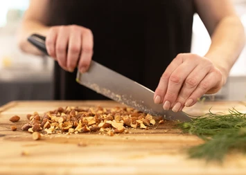 3. Finely chop cauliflower, broccoli and celery. (Or, you can use a food processor if chopping isn’t your thing and you don’t mind the outcome looking a little messy. Still tastes good!) Chop nuts.