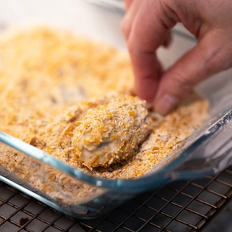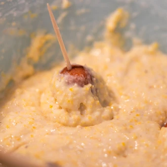 5. Dip about 6 smokies at a time into the batter, then gently coat or roll each smoky in the cornflake crunch (if using). Carefully put them in the hot oil and cook for 2-3 min, until golden brown. Place on a paper towel lined cooling rack. Repeat this process until all smokies are done. Carefully monitor your oil temp between each batch to keep within the suggested range. These can be served immediately or refrigerated and reheated before serving.