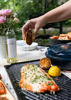 - Garnish with fresh herbs (if using), drizzle with grilled lemon juice, and add a sprinkling of flaky salt. Serve immediately and enjoy with a glass of BDX Blanc!