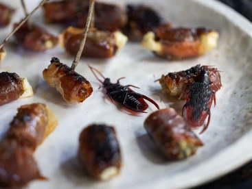 Are you ready to freak out your friends and fam this Halloween? They’ll get a frightful kick out of these creepy crawly Stilton-Stuffed Cockroach Clones! Whip up these super simple, supremely delicious, sweet and savory little critters and just wait for their reactions.
