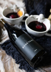 In honor of the season, we swapped out The Don for Boneyard Syrah, our brooding, spice-forward red that brings depth and drama to this warm, mulled wine. Its dark fruit and earthy undertones play beautifully with cinnamon, clove, and citrus, making it the perfect base for this spooky sipper. Plus, the bottle looks cool on the bar.