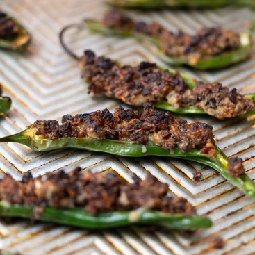 Stuffed Shishito and Jalapeno Peppers with Chorizo