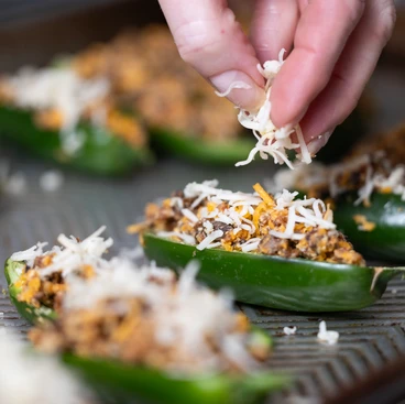 - 8-10 oz pepper jack or cheddar cheese, finely shredded – If desired, reserve about a ¼ c to top the jalapenos